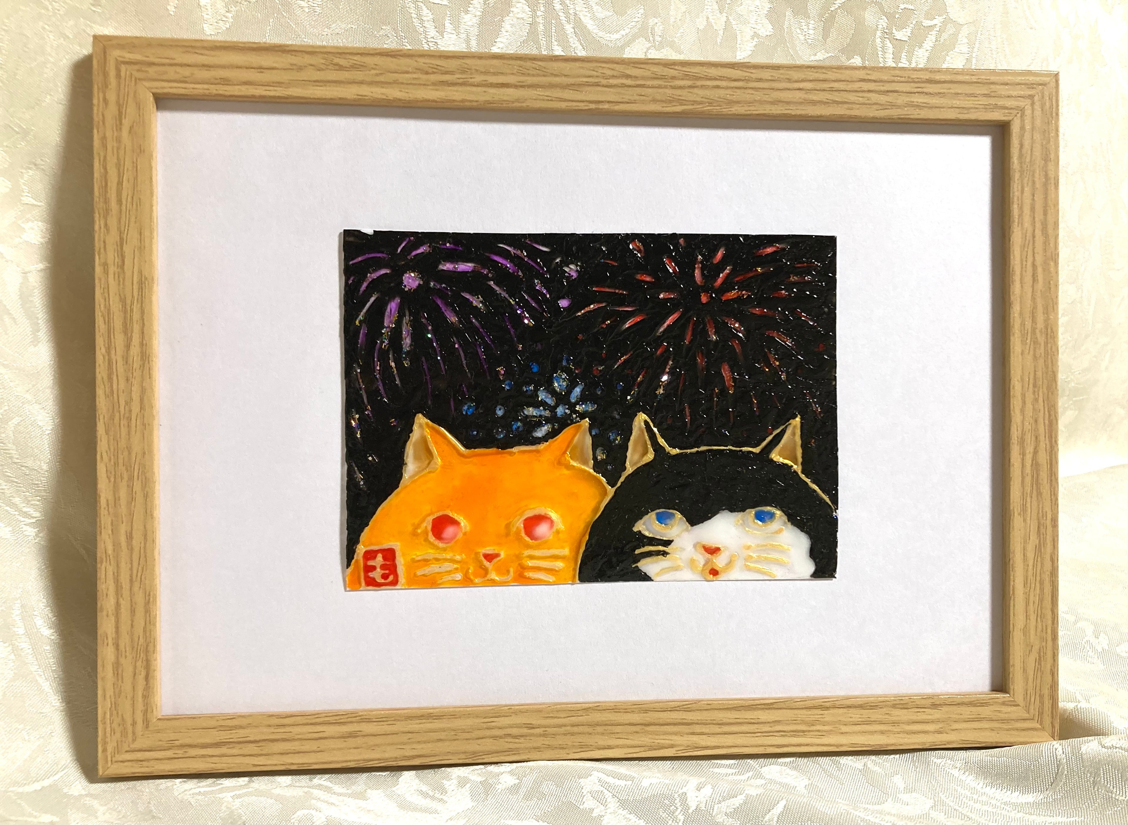 ・作品保護のために絵の表面にフィルムを貼ってあります。アクリルの板などに絵を直接貼ってしまうと剥がす時に絵が損傷しますのでおやめください